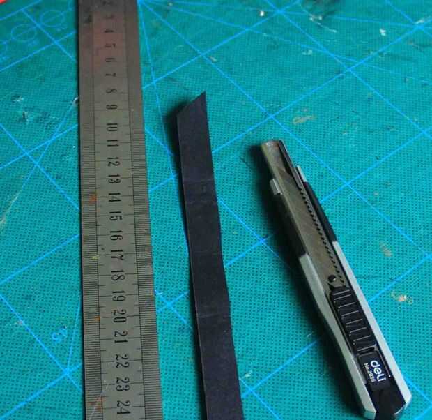 Cortar una tira larga de papel de trazo negro de la tarjeta.