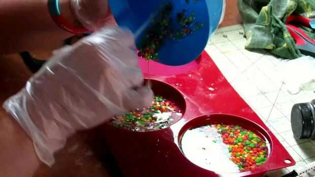 Paso 3: Verter la mezcla de resina y Nerds