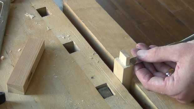 Hacer una mortaja y espiga empalme (trozo) (13 / 14 paso)