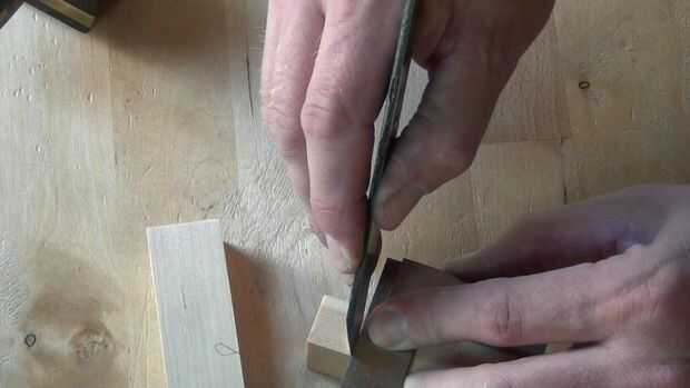 Las líneas del hombro de espiga son acuchilladas, con un cuchillo de la marca y la escuadra, todo. Define el volumen en el que preparamos la espiga.