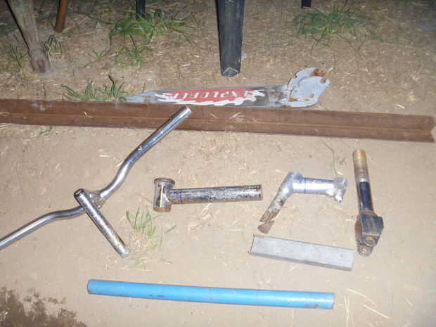 - Una longitud de tubo de acero de un viejo marco de la bici (esto debe ser lo suficientemente estrecha para deslizarse dentro del extremo de la barra de potencia).