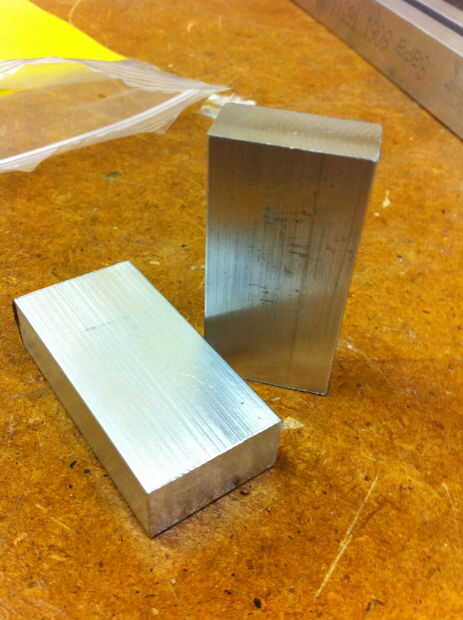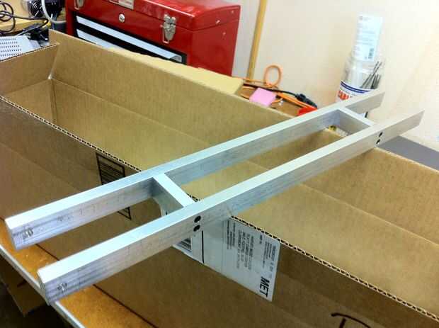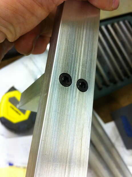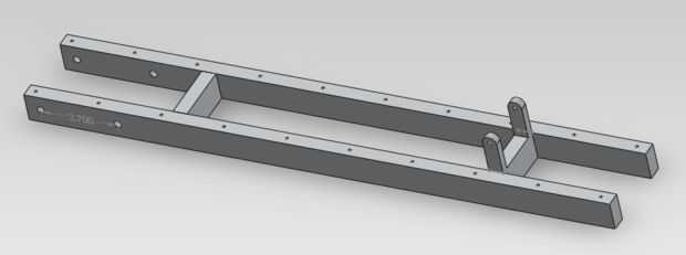 Utilizan dos longitudes de 1 "x 1/2" x 20 5/8" 6061 de aluminio como los 'carriles' y conectado con dos 2" piezas de la misma acción para compensar el apoyo de la cubierta. Utiliza una sierra para cortarlas aproximadamente a la longitud y luego ante los extremos a la longitud de un molino con un molino de extremo de ~ 1"(lo hice para los rieles y las secciones de conector). Cada conjunto cuenta con dos óxido negro 1" tornillos de cabeza hueca 8-32, contra aburrido por lo que las cabezas queden al ras.