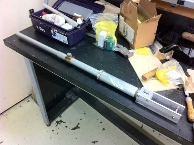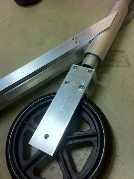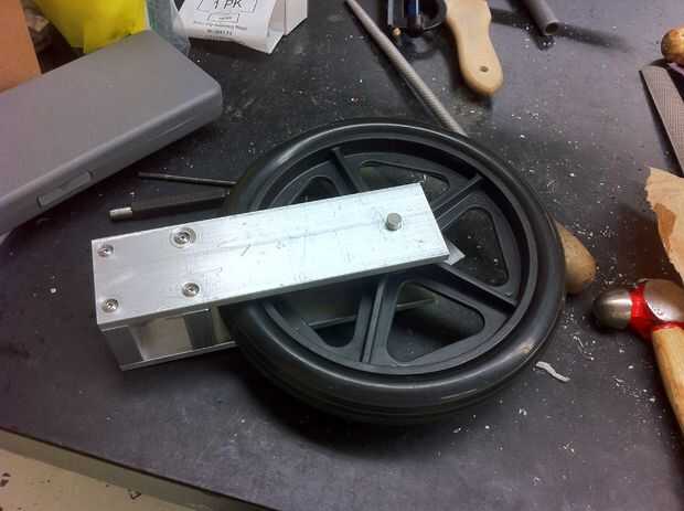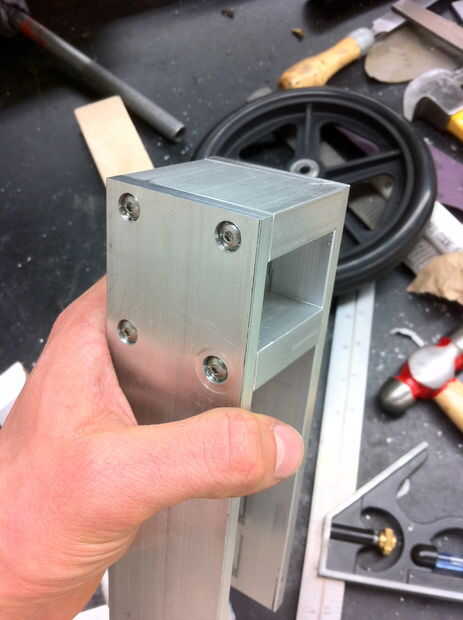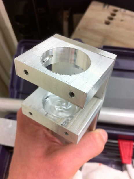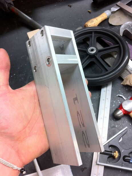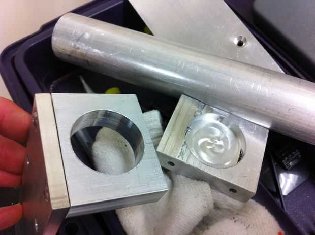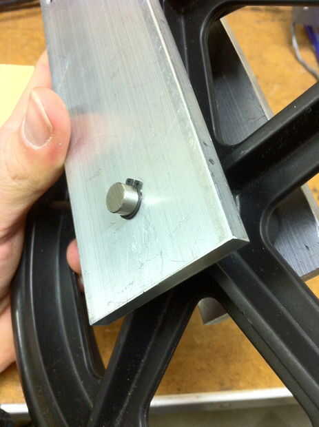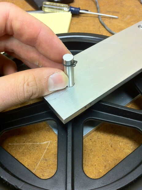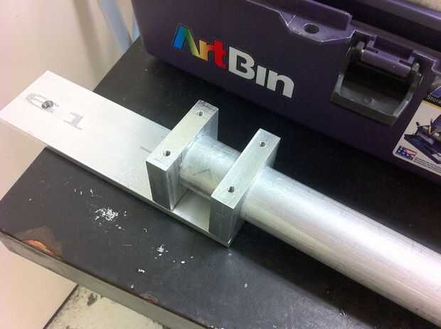 Taladré un agujero 0.316 para encajar el eje 5/16", y luego hice arboledas en el eje para los anillos de retención que mantienen el eje en su lugar.