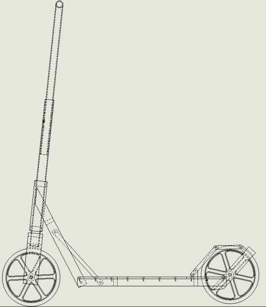 Una vez que el modelo de scooter construido, tomó alrededor de una hora de ajustar la longitud de la barra de plegado y colocación de los agujeros antes de que el scooter trabado en la posición desplegada en el ángulo derecho y bloqueado en la posición doblada para que la columna de dirección fue paralela a la cubierta. Me tomó dimensiones del modelo y utilizar éstos para hacer la parte real.