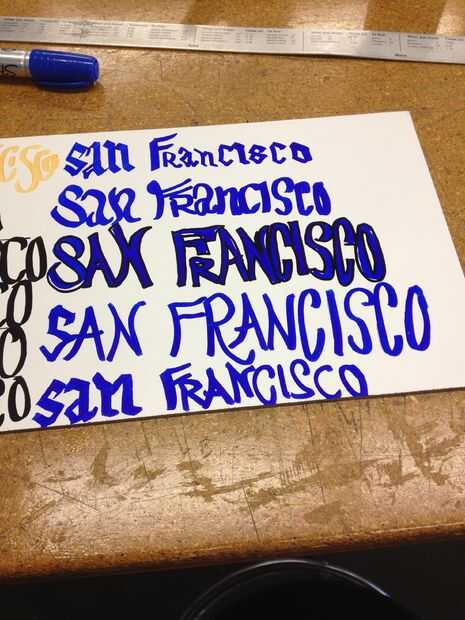 Tenga en cuenta que este ejemplo es de un signo manuscrito con letras estilo libre sin guías de carta o contornos de la carta. Siempre es importante utilizar a una guía de borde recto en la muestra final o colocando una regla larga en la parte superior e inferior como guía temporal. Lo hice en http://techshop.ws Techshop