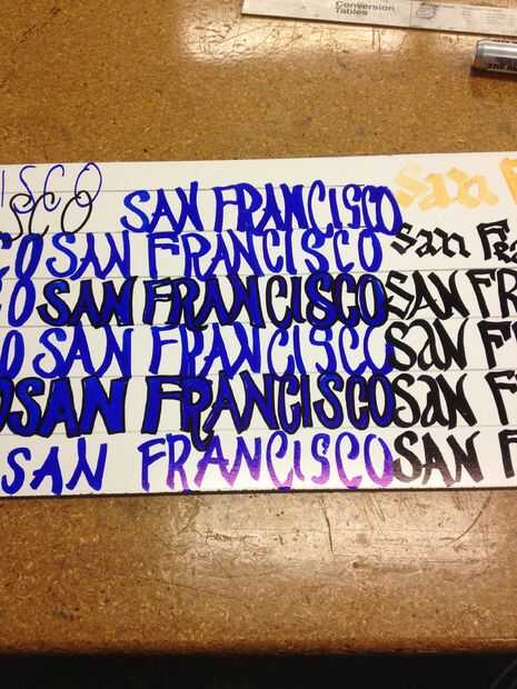 Después de haber usted seleccionó materiales y practica su texto básico considerar lo siguiente. Después de la palabra seleccionada es un estilo constante, la altura y la anchura, se logrará el mejor resultado final. Observe cómo la primera línea no es tan consistente como las líneas 3 y 5 que se resaltan con un contorno en negro para mostrar los mejores ejemplos de esa columna.