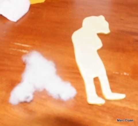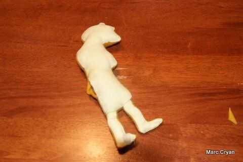 he querido Moe tiene unas piernas flexible, así que pongo un limpiador de pipa en. Corte un limpiador de pipa al tamaño correcto y doblar a la derecha forma. Hacer una bolita en el extremo del tubo limpiador para que el alambre no asoman a través de la muñeca. Envolver el relleno un poco todo el limpiador de pipa y ponerlo en las piernas. Rellene el resto de moe. Asegúrese de que la materia lo bastante completo y haz el relleno en todas las pequeñas grietas.
