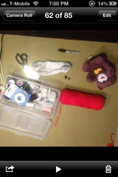 Paso 1: materiales De la pisadaAgujaBotonesTijera3 grandes calcetinesPaso 2: pasos Sew a long rectangle on the sockHacer cuatroHacer que el cuerpo por rellenar un calcetín con algodón o algo suaveLazo alrededor de la cabezaCoser la parte inferior del