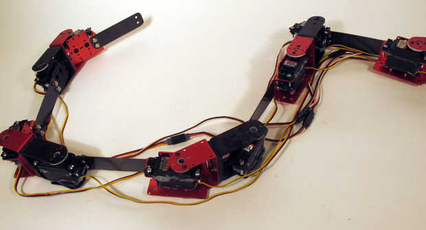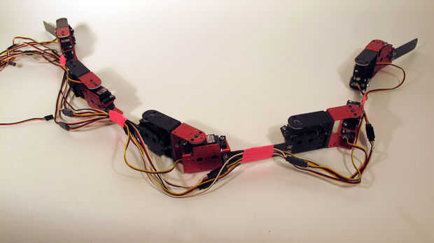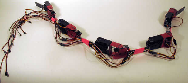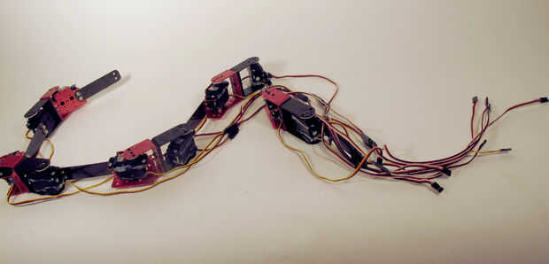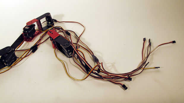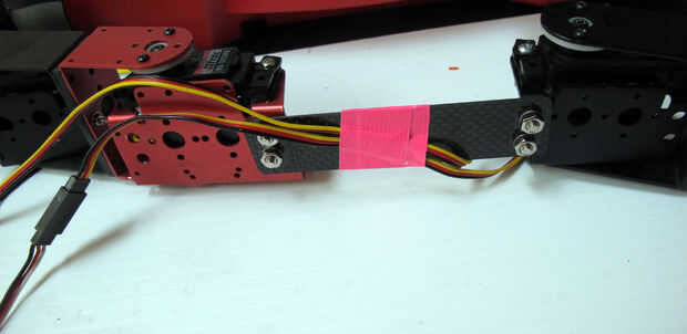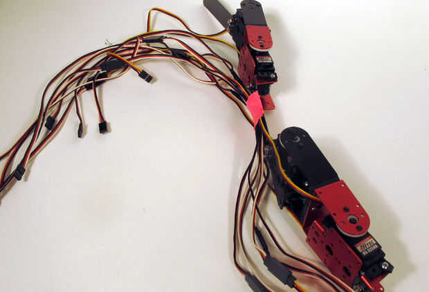 Usando sus extensores de cable del motor servo, alargar todos los cables de servo que se extienden a lo largo del cuerpo, hasta unas pocas pulgadas más allá del último soporte de servo.