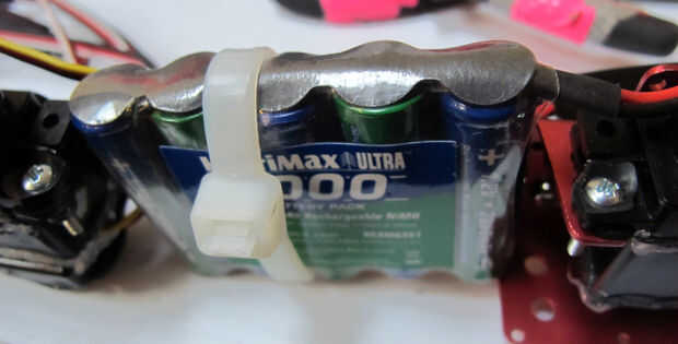 Utilice dos zipties para fijar en las pilas a la fibra de carbono.