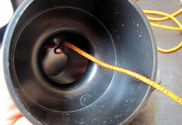 Coloque el caucho en el reductor del vacío y corte una abertura pequeña, lo suficientemente grande como para pasar los cables. Pasar la cadena por el reductor del vacío por lo que hay cerca de 8 pulgadas de cadena en el interior. No hay que ser demasiado en el exterior porque el anclaje estará ubicado en la cola.