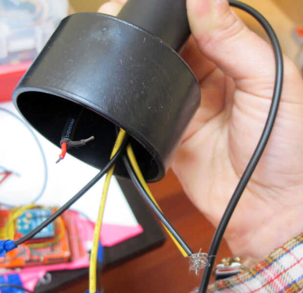Ahora, soldadura que el botón on / off a la roja 6V de alambre se conecta al borne de tornillo, para que cuando este encendido, enciende el arduino y los servos power. Este botón es el botón de encendido/apagado.