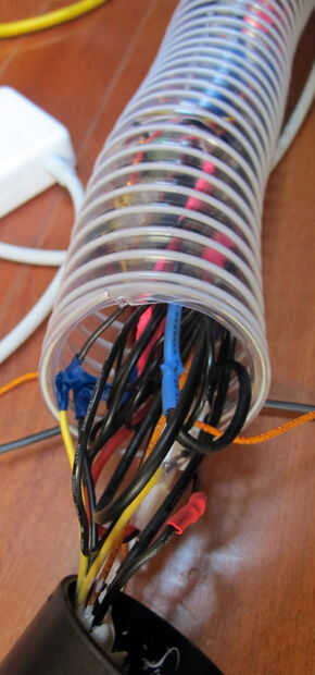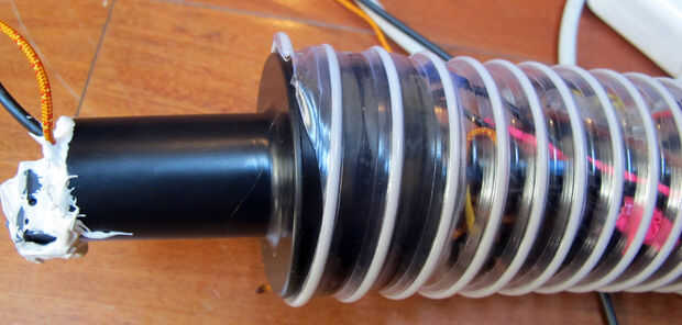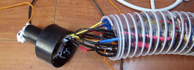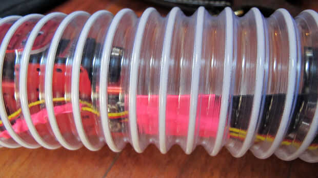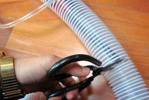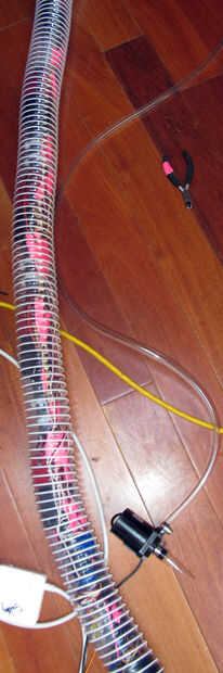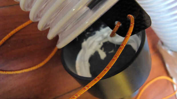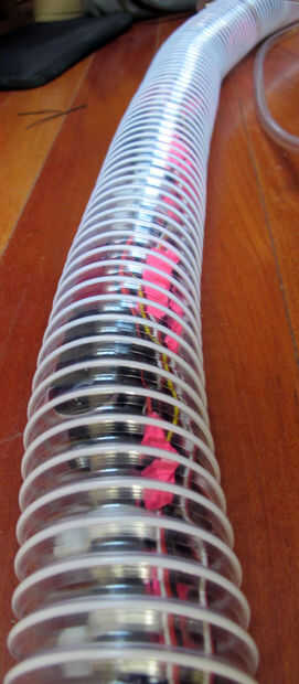 -Una vez en todo el camino, utilizar la cadena en ambos lados para levantar la fibra de carbono al final del tubo de vacío. Un nudo aquí para evitar que resbale.