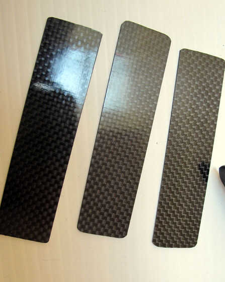 -Taladre 4 agujeros en cada pieza de la fibra del carbón usando una broca de 3 mm o alrededor de ese tamaño.