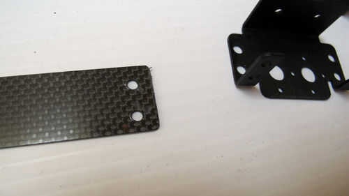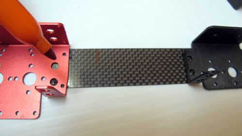 -Colocar uno de cada soporte de servo 3 pulgadas aparte. Marca de la fibra de carbono donde los dos agujeros grandes en los soportes de línea, por lo que se puede taladrar aquí para atornillar en la fibra de carbono.