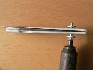 Taladro del agujero mismo diámetro como el remache. Coloque el orificio 5/8" desde el extremo de su mango, para que cuando las hojas están abiertas la parte posterior de las cuchillas son compatibles con el mango. Ver las dos arandelas en el remache. El PVC no es suficientemente rígido sin las arandelas.