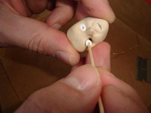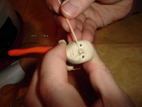 Una ventaja de la figura de ser sumergida en agua es que puede fácilmente utilizar lija para terminarla, sin necesidad de barniz o esmalte después. Lijado con grano 320, que todavía funciona muy rápido, deja huellas que volverse invisibles cuando está mojado. Puse en detalles como los ojos después de hornear la base de la cara. Párpados y cejas fueron puestas encendido después de hornear la cara con los ojos. No debe overbake arcilla polimérica, pero nunca he tenido problemas al hornear el fimo hasta al menos 3 veces con enfriamiento intermedio.