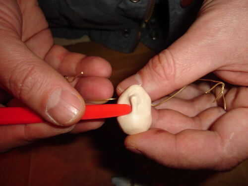 La figura es permanecer sumergidos en agua, y quería evitar cualquier pintura que de con el tiempo. Realmente Fimo aconseja contra el uso de revestimientos en proyectos de "bola de nieve" por esa razón. Por lo tanto detalles de ale se hacen directamente en la arcilla del polímero.