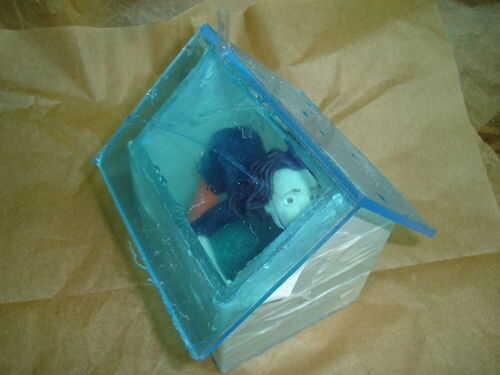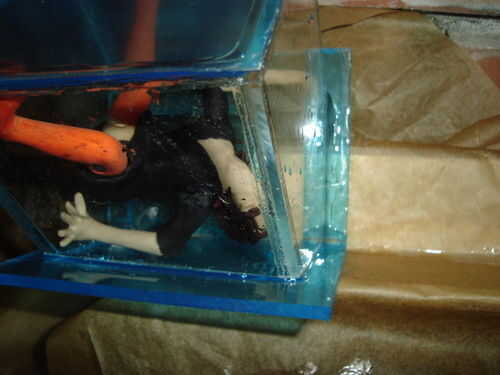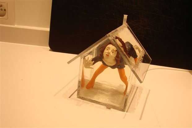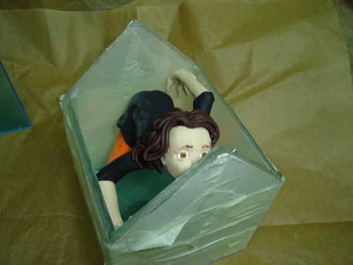 Pies de figura se pegan a la parte inferior. Acryfix funciona muy bien con Fimo. El techo se pega en su lugar, usando el pegamento con moderación. Después de que el pegamento ha fijado, la Junta se hacen impermeables con filetes de cola.