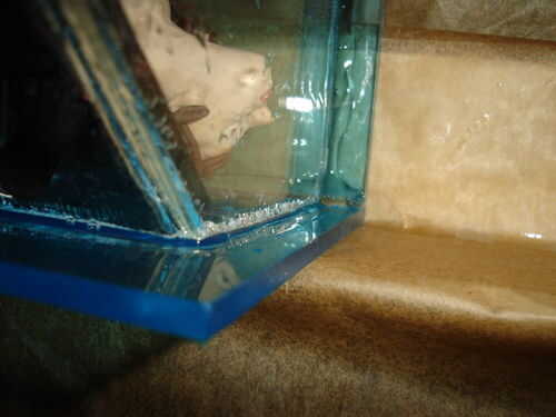 Cuando la casa esté completamente llena, la inclinación para sacar las últimas burbujas de aire y llenar poco más de agua si es necesario. Con el nivel de agua a medio camino el tubo de la chimenea/relleno, cierre para arriba vertiendo cuidadosamente pegamento en él. No te muevas hasta que el pegamento ha fijado.