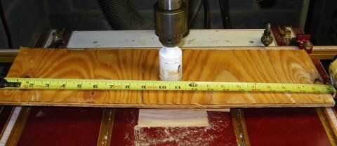 El pedazo de 3/8 madera contrachapada utilizada en este ejemplo es 6 pulgadas, 21 pulgadas y un orificio de 1 1/2 pulgada se aburre en la línea central para permitir espacio para el mango.