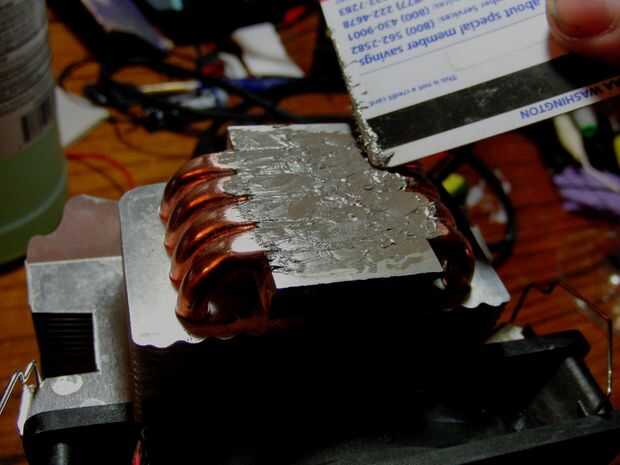 Esparza una pequeña cantidad de plata Ártico en la parte superior del disipador de calor usando una tarjeta de crédito o pieza delgada de plástico.