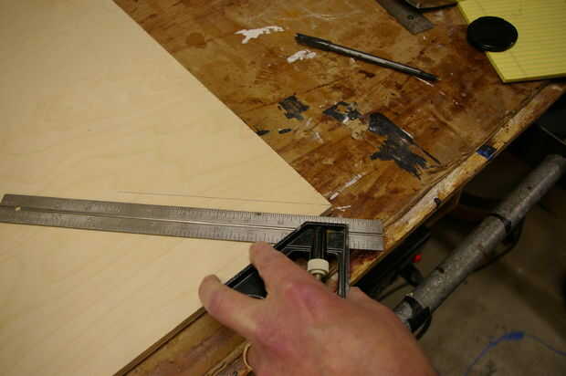 Nota sobre esta parte: sólo tienes que hacer todas las marca y mide de una esquina. Una vez descubierto el punto de referencia, puede transferirlo a las otras tres esquinas con la Plaza de combo de 45/90.