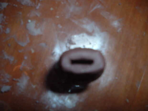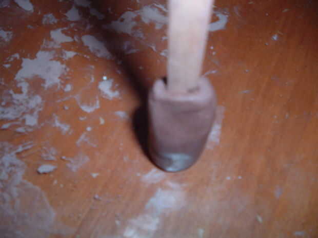 Mientras la cámara principal de la ocarina es reafirmante todo el molde, vamos a hacer la boquilla. Estirar un trozo de arcilla cómo siempre mucho tiempo desea hacer la boquilla. Toma un palillo"ranura" (yo solo uso un palito con el extremo cortado) y fuerza a través de la boquilla como en la foto. Forma quieras. No acaba de hacer ocarinas de arcilla. Pueden ser hechos de madera, metal, plástico o cualquier cosa que puede ser moldeado y mantendrá su forma.