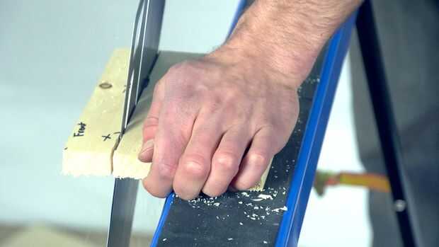 Empezar haciendo dos marcas en 4" a lo largo de ambos lados de la pieza, luego alinee con el borde recto y corte.