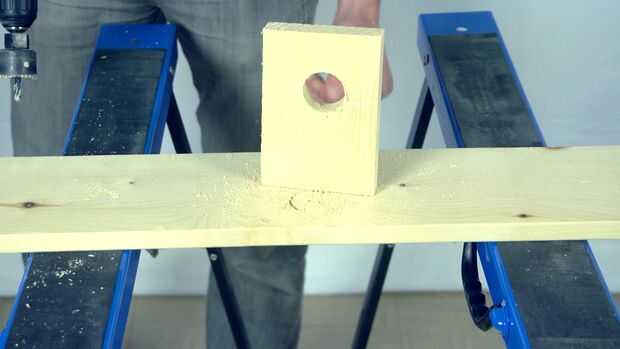 Por último, cortar un agujero con la broca hueca en el centro del tablero y 2/3 el camino de la parte inferior del tablero.