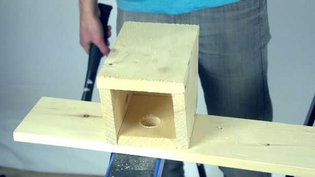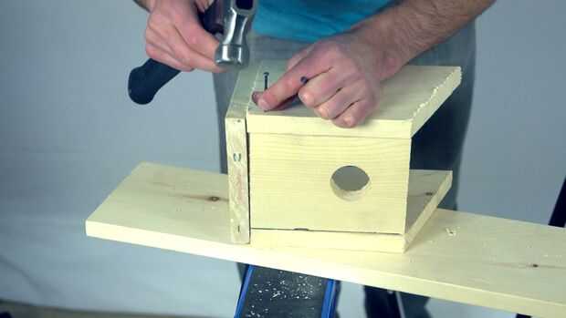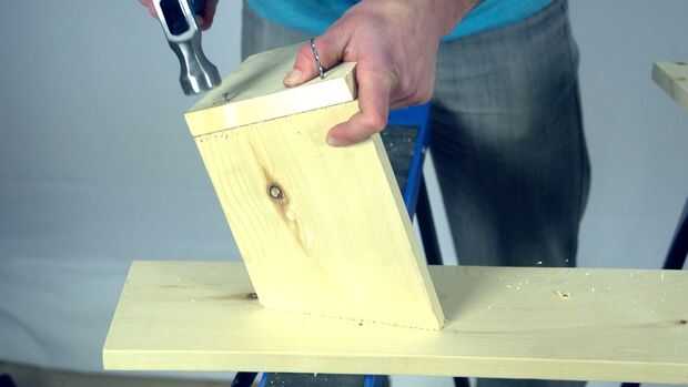 Comience clavando los lados en la base. El corte de los lados debe ser contra la pieza base y cortes diagonales deben hacer frente la misma manera. También sugiero comenzar un par de clavos en la base, a continuación, hundirse en la pieza lateral. Una vez más, consulte el vídeo para ver cómo hacerlo.