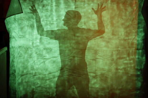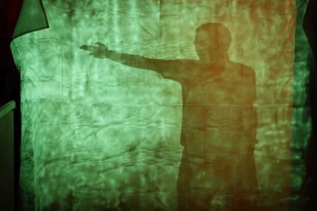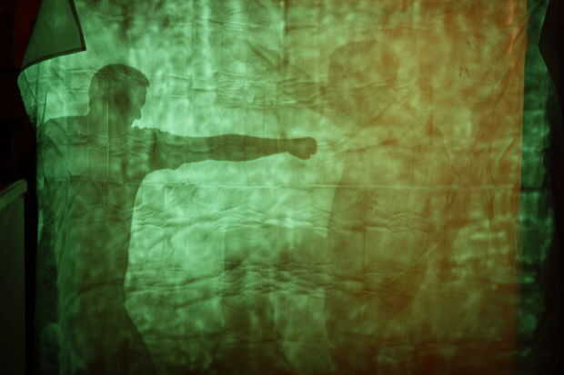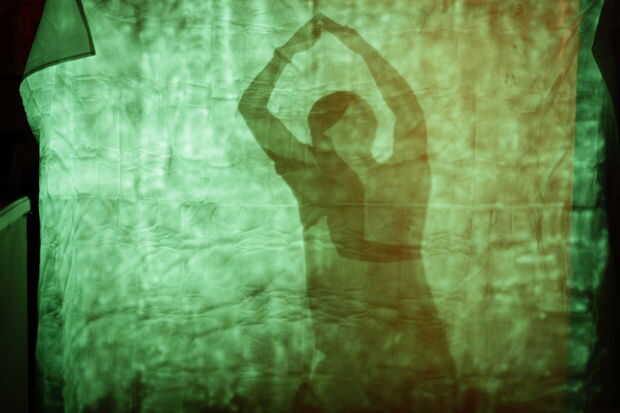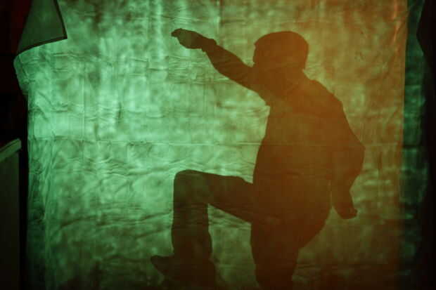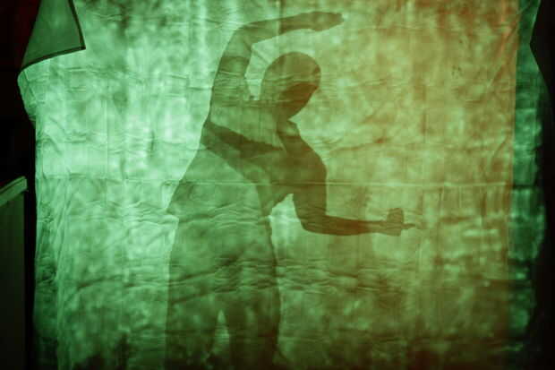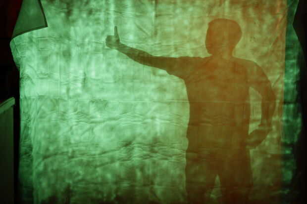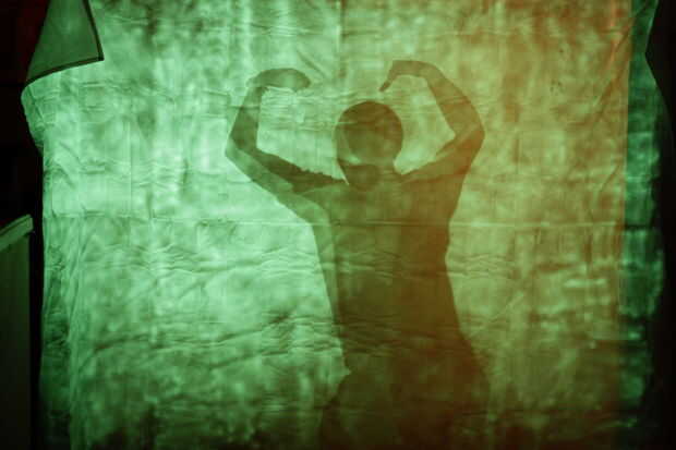 Que el "usuario" hacer una pose bien contra la pared. Quiere en él (literalmente tocar) para que obtener como poca luz que se escapa detrás de ellos como sea posible. Estaba usando mi flash fuera de cámara y a la derecha para arriba en la pantalla de luz. Sólo fue fijado al modo Manual plena potencia (1/1). Si utilizas un flash, no lo utilice en modo Auto si puede ayudar. Para esto, usted no necesita preocuparse por la exposición adecuada, desea la luz que puede llegar. Una vez que estén listos, que cierren sus ojos y disparar el flash (o cualquier fuente de luz). Cerrar los ojos es importante, así como para el usuario. Puesto que va a ser oscuro cuando se usa esto, no quieren la luz de sus ojos se dilatan. Si lo hace, lo hará más difícil para ellos ver lo que acaba de hacer! Sé por experiencia.