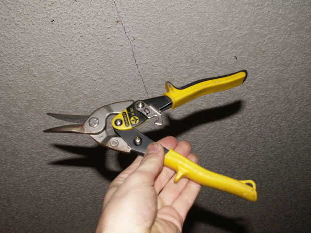 Cortadores de hoja de metal. Fácilmente encontrar en la ferretería por menos de $10. También obtener un marcador permanente.