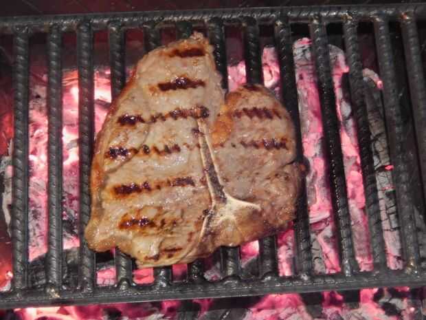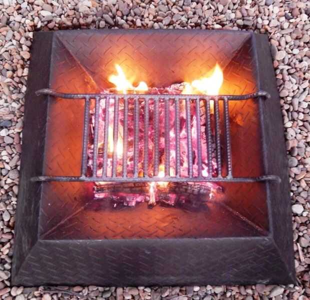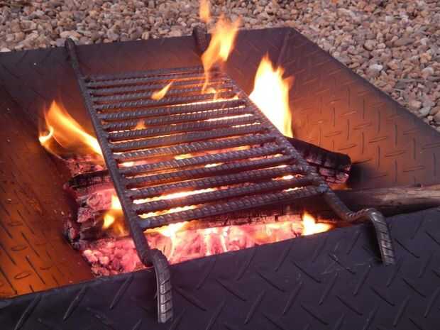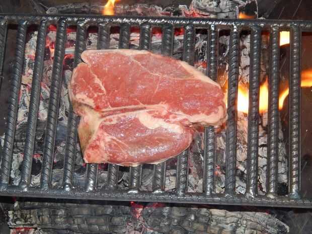 Cuando las llamas están bajas y los carbones están brillando intensamente feliz tiro su carne en. Cocinar la carne a su gusto.