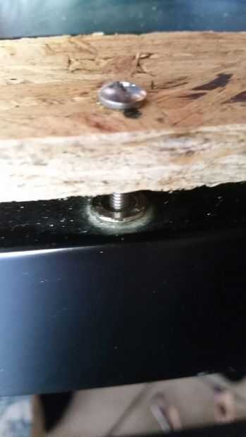 Antes de colocar más piezas, he probado la posición de los tornillos de apoyo. Encajan en los agujeros. Un poco apretado pero ok. La parte larga de la tira de apoyo va hacia el frente, porque quiero el soporte de inclinación hacia atrás un poco y esto proporcionará una zona de inclinación para el stand.