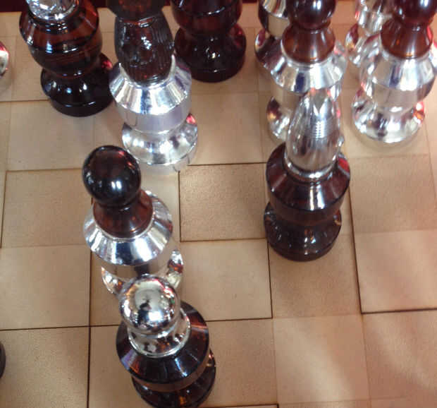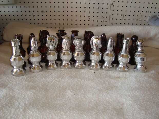 Como se puede ver que las piezas bastante grandes para esta tabla son del juego de ajedrez de Avon, algunos de ellos todavía tienen la colonia original o después de afeitado en ellos, que puede hacer para un juego interesante como el peso de los contenidos puede hacer la parte inferior de una pieza que se mueve la gota apagado como lo levanta. Afortunadamente nos hemos todavía sufren una rotura.