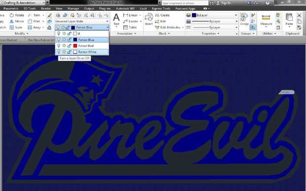 Seleccione una de las capas y guardar la imagen como archivo de cad. Por ejemplo tenemos la capa azul patriota destacó. No hay otra capa está activa.