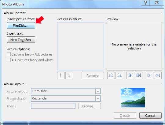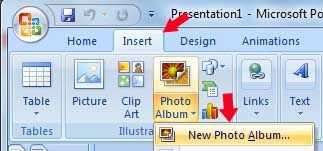 En la parte superior, haga clic en "Insertar" y luego "Foto Album".