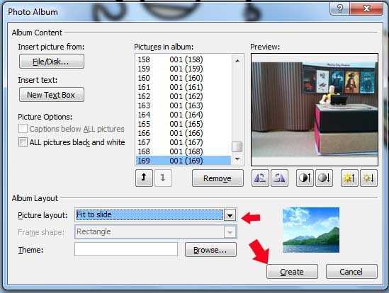 Haga clic en "nuevo álbum de fotos" y seleccionar todas las imágenes de la película.