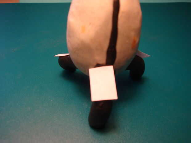 Cortar un trozo de papel de 8mm de espesor y 3cm de largo. Cortar la tira de papel en tres (1cm). Coloque las placas en cada pata.