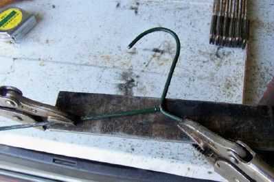 Insertar las curvas de 90 grados en los agujeros de los extremos de la varilla de pasador. Junte las piezas como se ve en la foto y soldarlas juntas. Otra vez, si no tienes acceso a un soldador, puede doblar algunas de la longitud adicional que se discutieron en el paso 4 en la otra pieza a unir los trozos.