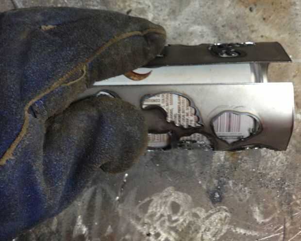 Ahora saque la lata y junte hasta que te gusta su forma. Tiende a tener líneas rectas entre los cortes que están cerca del borde.