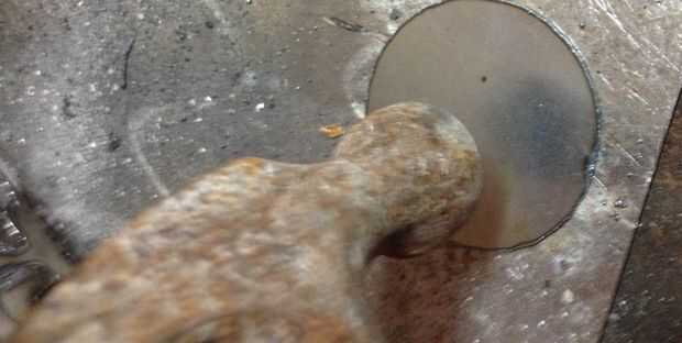Usted quiere que sea un poco cóncavo para que la cera se la piscina en la base, no sobre la mesa para que golpee con un martillo. Probablemente hay una solución mejor, más elegante, pero probablemente no más satisfactorio!