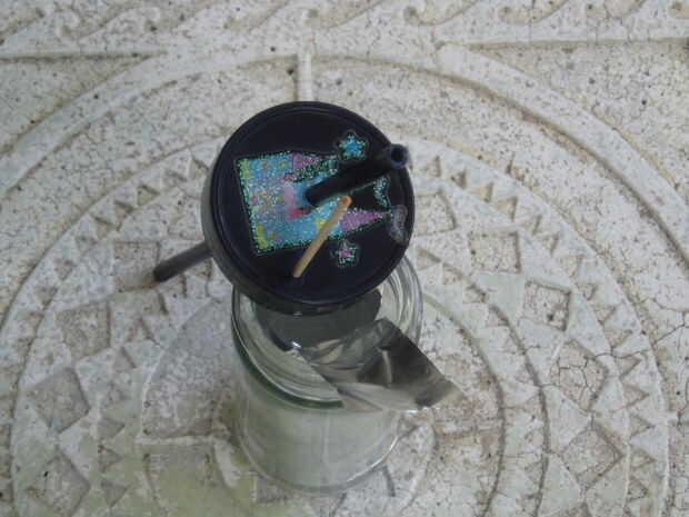 Este cuadro también muestra el papel de aluminio después de que se ha rodado, insertado en la jarra y se abría.