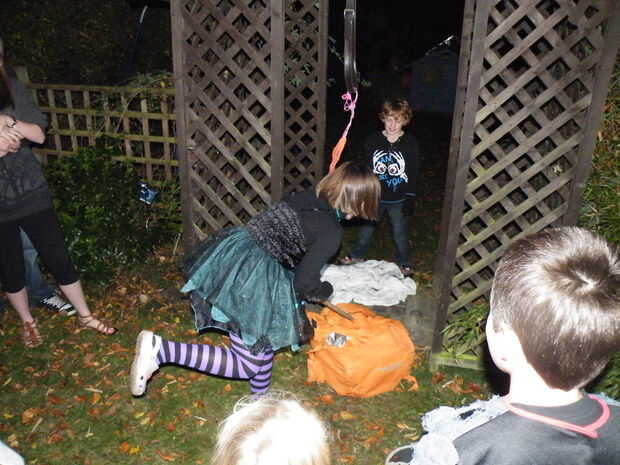 Finalmente, la cadena arrancó de la parte superior, y los niños la evisceración en el piso.