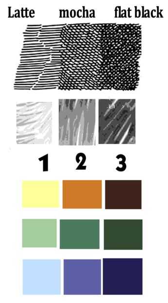 Si impresión una versión en blanco negro para ayudarle a ver más claramente la 3 niveles de cada color ha - de tono más ligero, medio oscuro, oscuro.