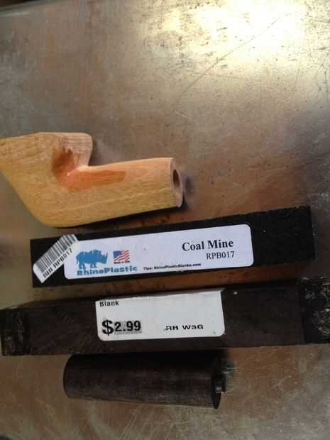 En la segunda imagen adjunta a este paso, verás el stummel Osage argentino que compartía en algunas de mis otras fotos antes de termine. Que es que un RhinoPlastic en blanco--"una mina de carbón" es apenas la de marca para un granadillo en blanco y negro sólido--.