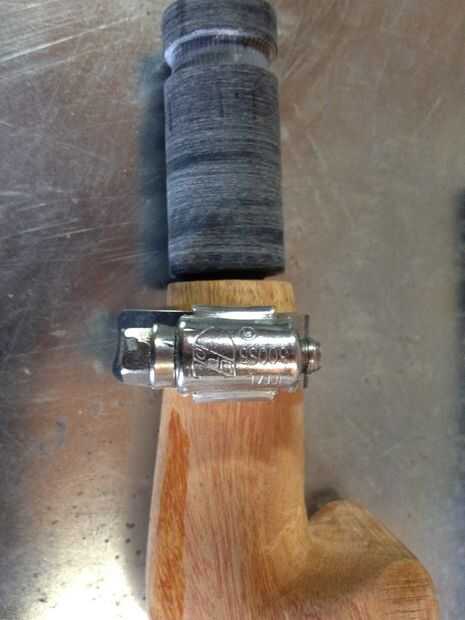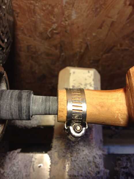 Se dará cuenta de que tengo una abrazadera apretada alrededor de la caña. Es la espiga de partir la caña mientras yo estoy comprobando el ajuste y la espiga queda forzado. Como se puede adivinar, partí una caña antes de empezar hacerlo--y si usted divide su caña accidentalmente, no es el fin del mundo. Sólo super pegamento de la división y usar una abrazadera de presión.