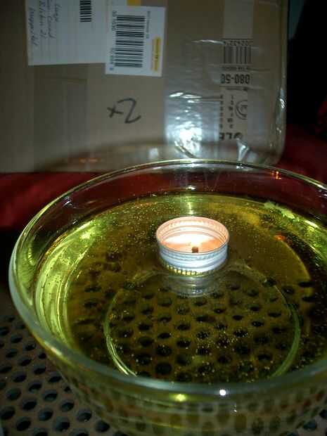 Acaba de poner algunos vegetableoil en la jarra (NO LAMPOIL!!!), cristal o lo que usted eligió y conjunto de la lámpara en la superficie. Ahora lite la mecha y ver y disfrutar cómo agradable y larga la luz se quema.