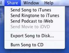 Ir a compartir y puedes enviar tu canción a iTunes o exportar a disco si desea colocar el archivo en algún otro lugar.
